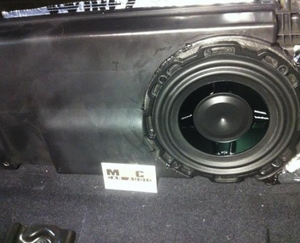 Shallow Rockford 8" is a perfect replacement for a blown factory subwoofer! Another successfull job at Meece Car Audio in Lancaster, CA.